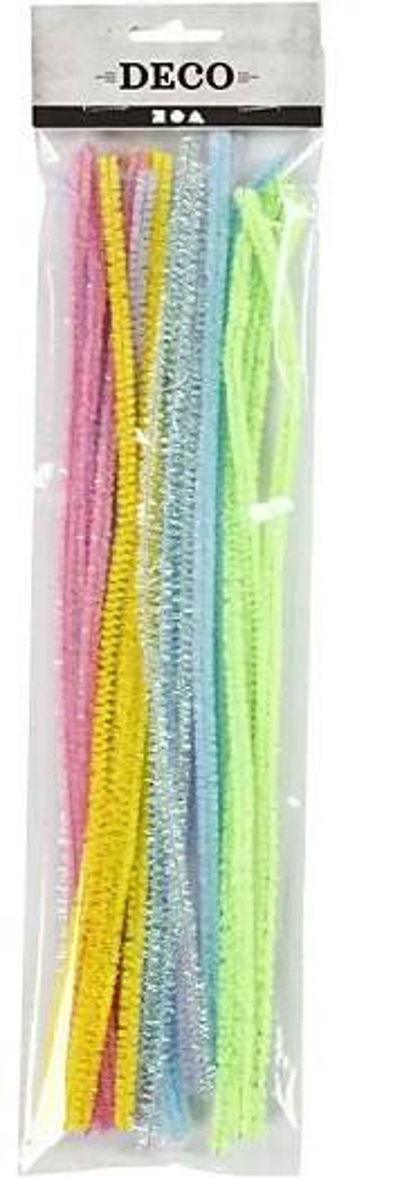 Deco chenille glitterdraad pastelkleuren 24st. d.6 mm l.30cm