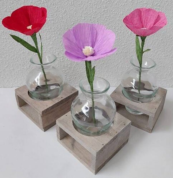 Inhoud: crêpepapier, bloemstelen, lijm.