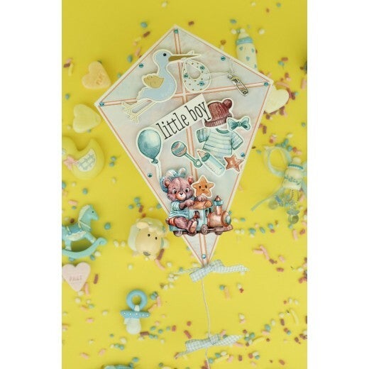 Yvonne Creations CD11903 Hello World elementen knipvel A4. Een prachtig elementen knipvel met auto, bal, speen, sokken, beer, ster, vliegtuig, luchtballon, blokken, voetbal, ballonnen, tas, trein, strik, regenboom, boom, wolk, huis, boom, truitje, takje met blaadjes, rammelaar, vlieger en fototoestel.