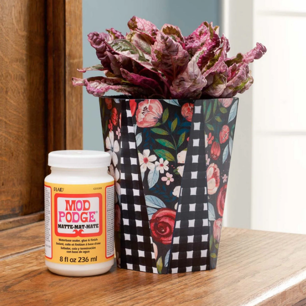 Mod Podge mat pot 236 ml. Mod Podge is een transparante decoupage lijm en lak in één. De lijm is gemakkelijk in het gebruik en geschikt voor de meest uiteenlopende materialen en ondergronden zoals papier, stof, hout enz. Daarnaast heeft Mod Podge een snelle droogtijd en is het makkelijk om meerdere lagen aan te brengen. Mod Podge is op waterbasis en dus gemakkelijk schoon te maken.