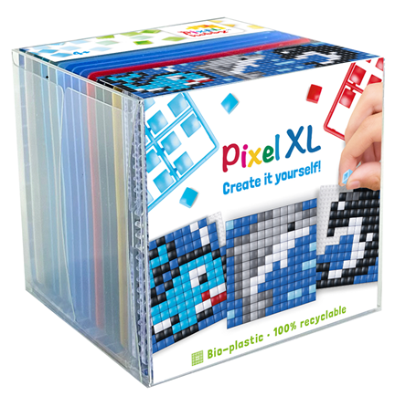 Pixelhobby Create it yourself XL kubusset 24216 ocean 6,2 x 6,2 cm met 3 verschillende patronen. Geschikt vanaf 4 jaar. I'm green. Bio-plastic - 100% recyclable.
