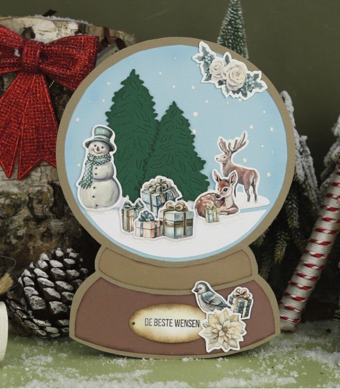 Card Deco Essentials Card Stencil (sjabloon) A5 (20 x 14,5 cm) Enchanting Globe (betoverende sneeuwbol) CDEST028. Tekenstencil voor het maken van een figuurkaart.