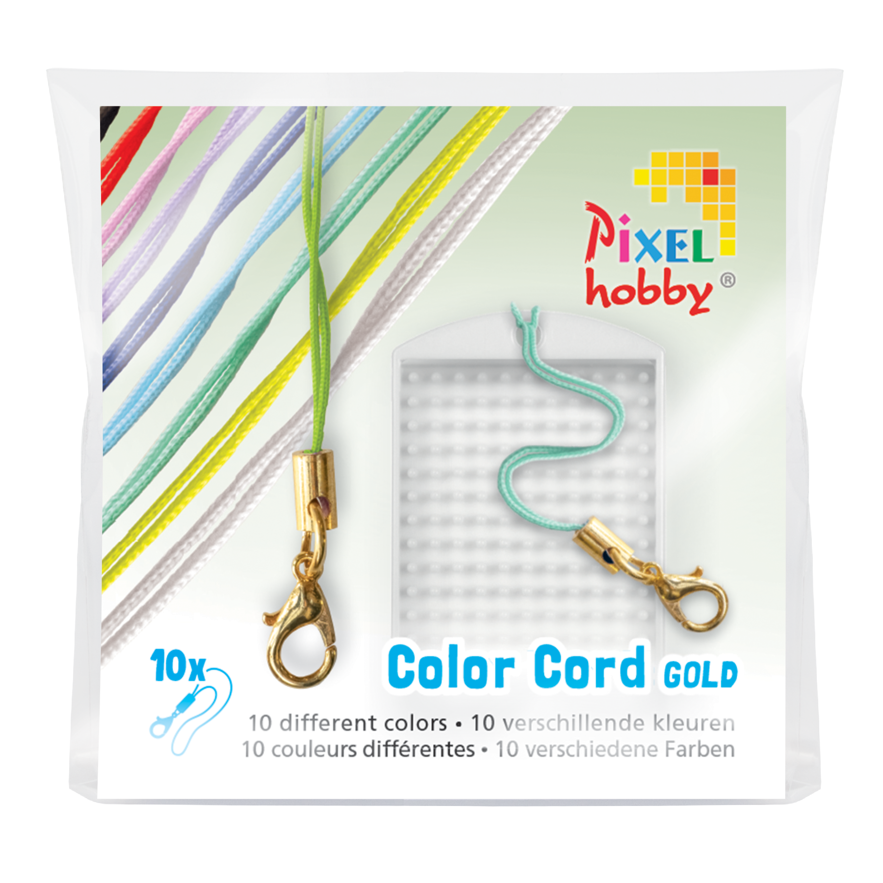 Pixelhobby 10 verschillende kleuren koordjes met goudkleurige karbijn.