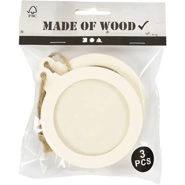 Made of Wood lijstjes 3 stuks ø 8 cm dikte 0,5 mm uitsnede 6 cm. Kleine, ronde lijst van hout met beschermende kunststof plaat en ophangkoord van natuurlijke touw. Je kunt het hout eenvoudig versieren met verf. decoupage, enz. Ze zijn ook erg leuk om Kerstballen van te maken. De lijst heeft ook een achterplaat die je kunt openen en sluiten om dingen in de lijst te plaatsen.