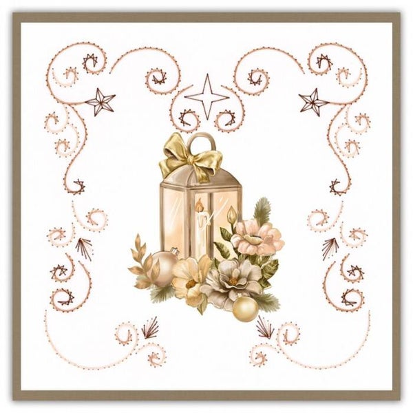 Stitch and Do 228 Amy Design Frosted Gold Christmas (gouden Kerstmis) STDO228. Deze handige borduursetjes bevatten drie 3D-afbeeldingen met 3 kleuren kaartkarton voor vierkante kaarten. Inclusief 3 x 50 m Stitch and Do Garen, 3x oplegkaartjes met een patroon en instructies. De oplegkaarten zijn voorgeprikt. Super handig, dus ook leuk om mee te nemen, of cadeau te doen als startersetje.