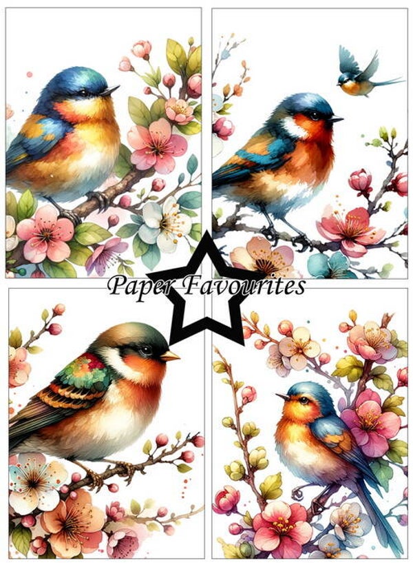 Paper Favourites A6 Birds and Flowers (vogels en bloemen) PFA569. De vellen zijn 10,5 x 14,8 cm enkelzijdig bedrukt papier 200 grams. Kleuren kunnen variëren. In het pakje zitten 8 verschillende vellen van elk 3. Zuur- en ligningvrij.