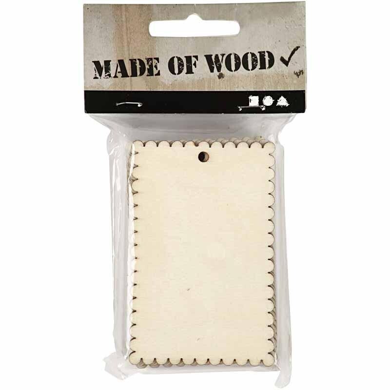 Made of Wood houten labels met bruin randje 5 x 8 cm 8 stuks