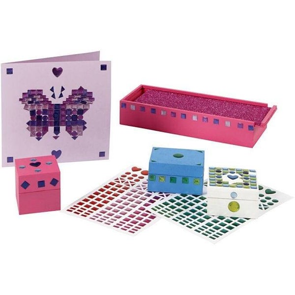 Mosaic (mozaïek) stickervel groen 11 x 16,5 cm. Kleine stickers 8 - 14 mm van glanzend plastic folie in 3D. Harten en geometrische vormen in 3 kleurtinten per vel.