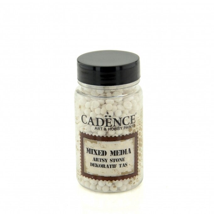 Cadence Art & Hobby piants Mixed media artsy stone dekoratif tas x-large potje 90 ml. Witte, lichtgewicht, kleine ronde steentjes die overal kunnen worden gebruikt in projecten met gemengde media en andere ambachtelijke projecten om een aangepast dimensionaal effect te creëren. Kan worden gemengd met acrylverf, gesso, reliëfpasta, gels of lijmen. Kan op het project worden aangebracht met een paletmes, spons of borstel. In korte tijd kunnen verschillende texturen worden gecreëerd. Niet giftig.
