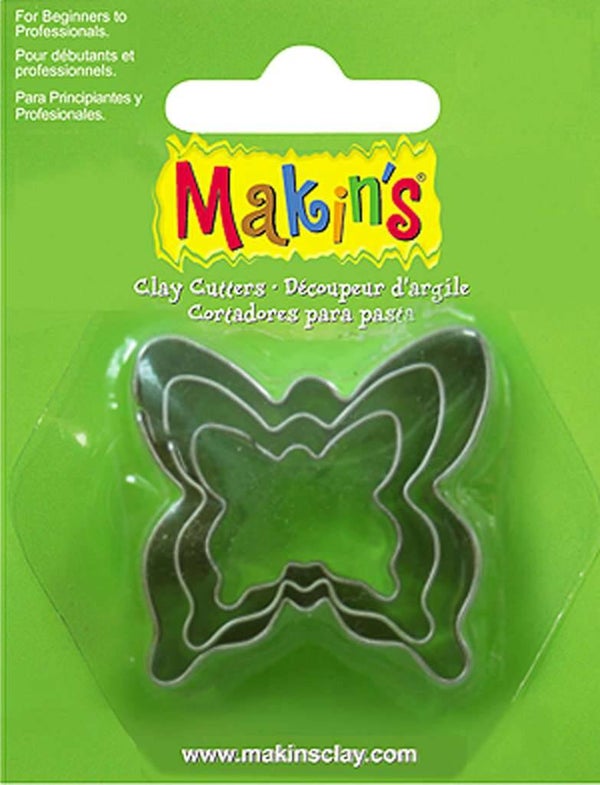 Metalen uitstekers vlinder, set van 3 maten, grootste Ø 3,8 cm, middelste Ø 3 cm en kleinste Ø 2,2 cm. Makin's Cutter Set Butterfly 36009. Geschikt voor Foam & Silk Clay en andere soorten klei. Ook voor het maken van koekjes.
